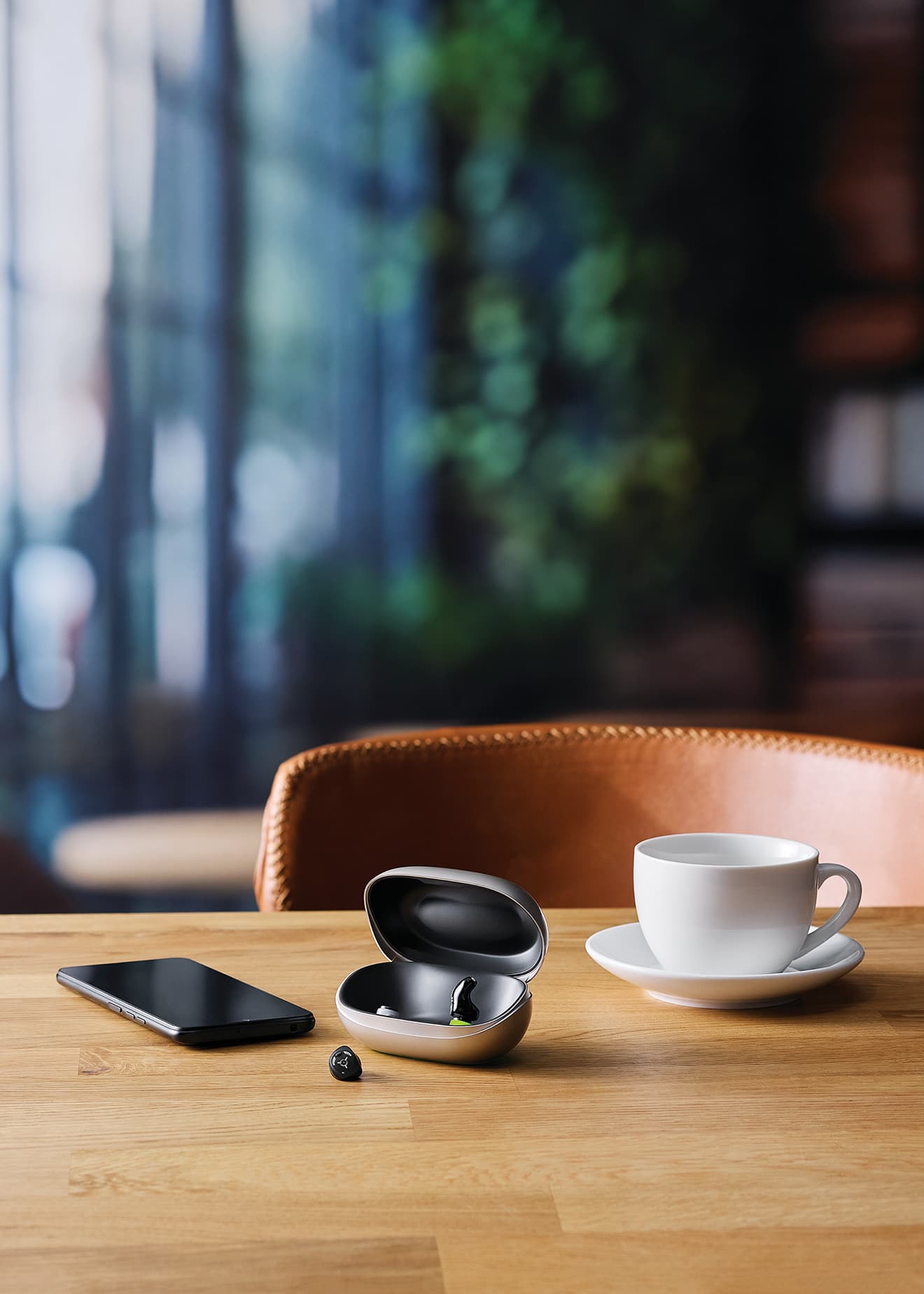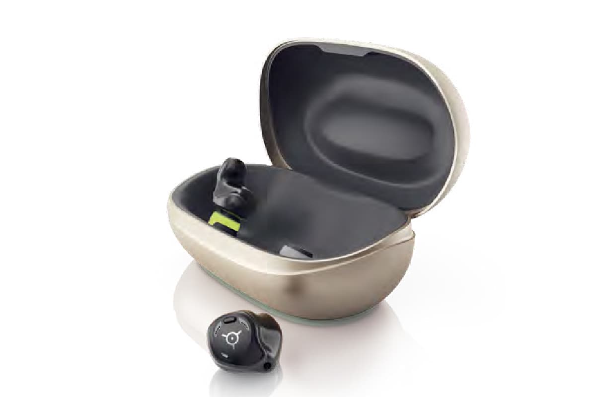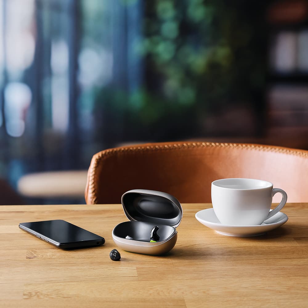 補聴器を充電器に入れるだけで、磁石で充電ポートにしっかりと固定されるので、簡単かつ安全に充電できます。
