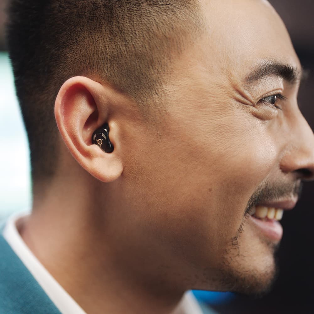 バート I-Rはオーダーメイドの耳あな型補聴器だから、マスクやメガネの着脱時にも邪魔にならず、長時間の装用でも快適さが続きます。